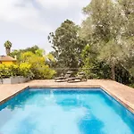 Die 5-Zimmer- Villa Casa De Lujo Junto Al Club Golf Tacoronte verfügt über eine Terrasse mit Aussicht auf die Berge sowie einen Swimmingpool.